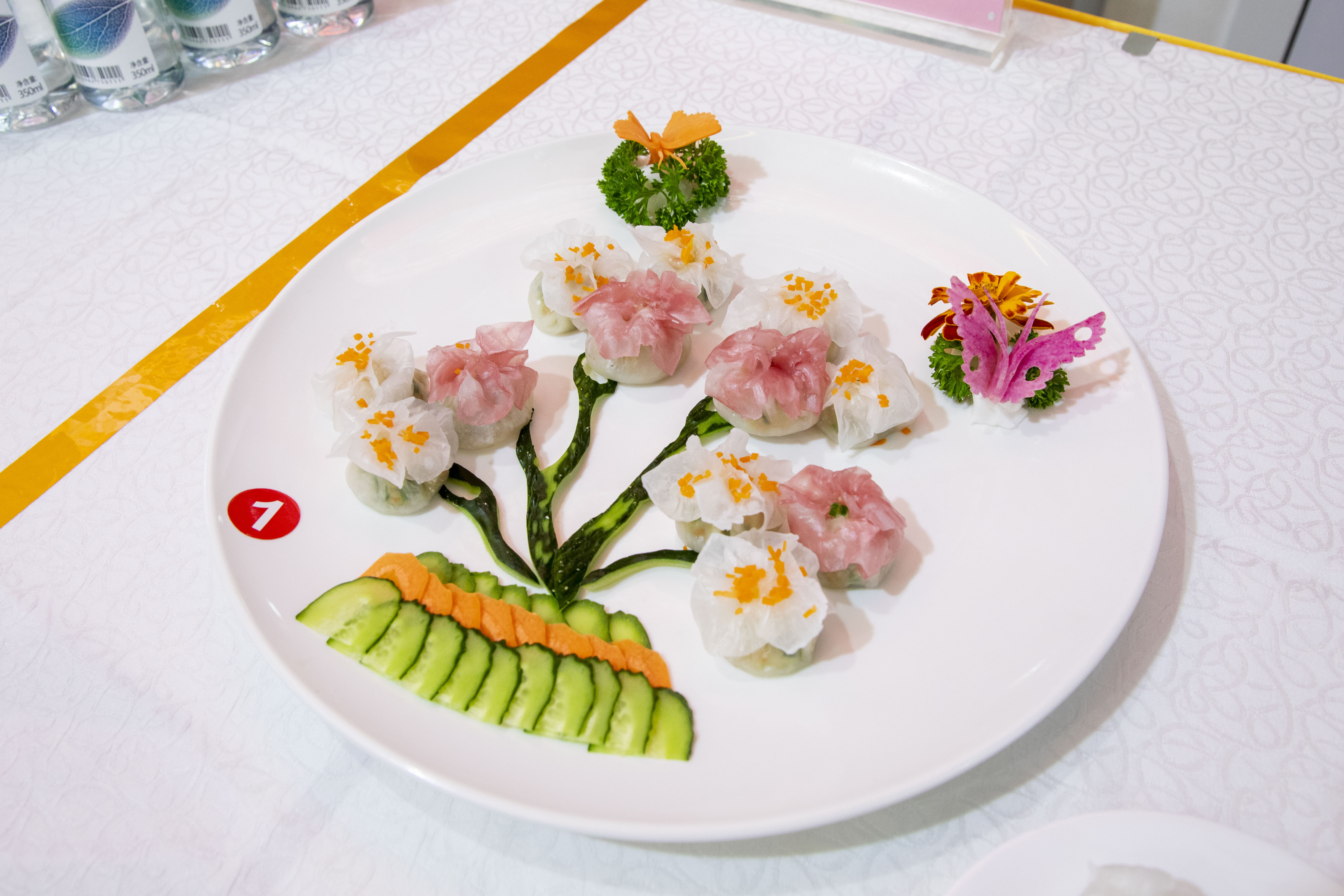厨艺大赛现场香气四溢、暖意流动。指定家常菜“炝炒手撕包菜”火候精准,迅速锁住蔬菜的脆嫩与原香;传统面点葱花饼色泽金黄、外酥内软,散发着质朴温暖的市井情怀。指定菜品炝炒手撕包菜火候精准,锁住蔬菜的脆嫩与原香;葱花饼外酥内软,传递质朴温情;以牛肉为主材的创新菜造型别致、风味出众;水晶蒸饺色彩绚丽、形味兼美。不仅是厨艺的较量,创意的比拼,更是匠心服务与人文关怀的生动交融。