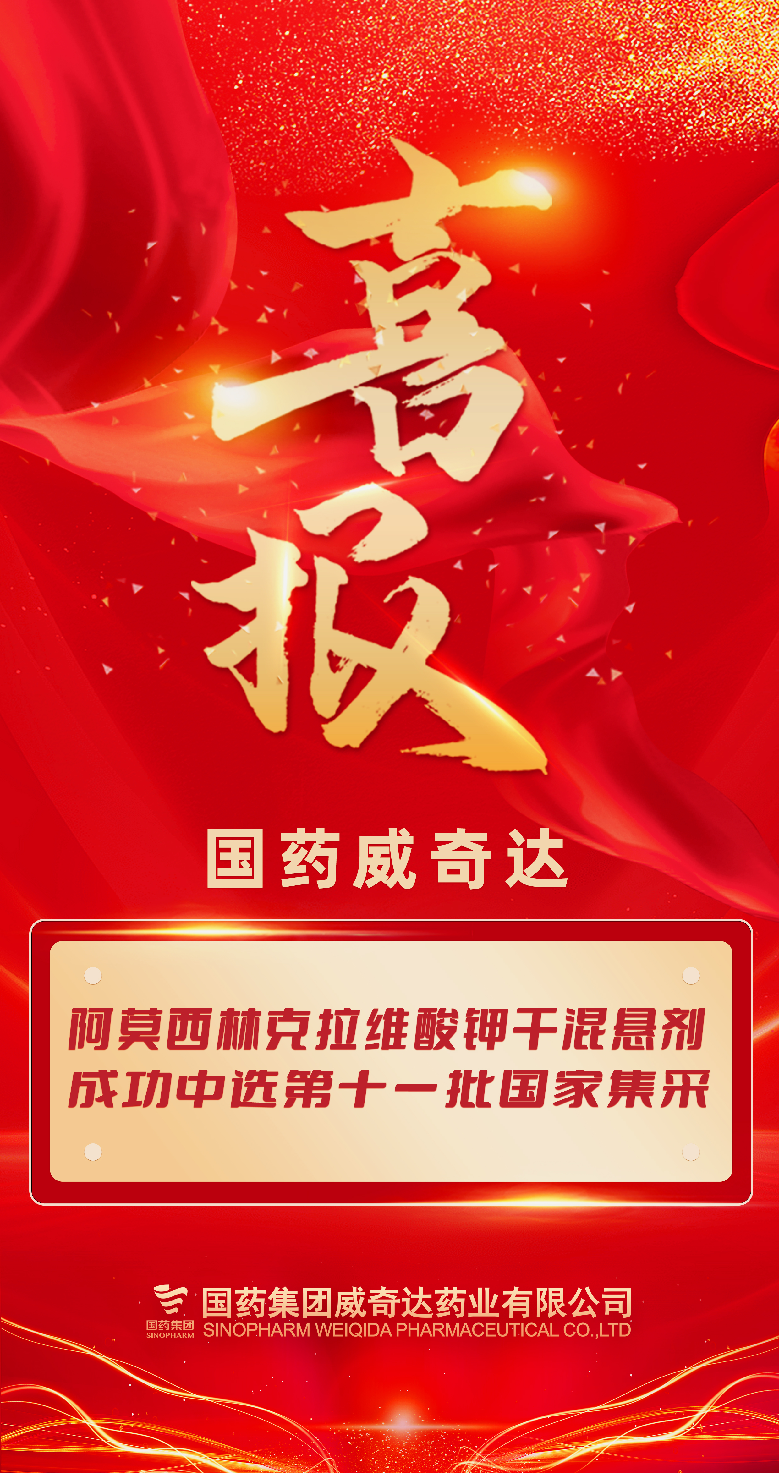 10月28日,国家组织药品联合采购办公室发布第十一批国家集采拟中选信息,国药威奇达阿莫西林克拉维酸钾干混悬剂以第一顺位成功中选。
