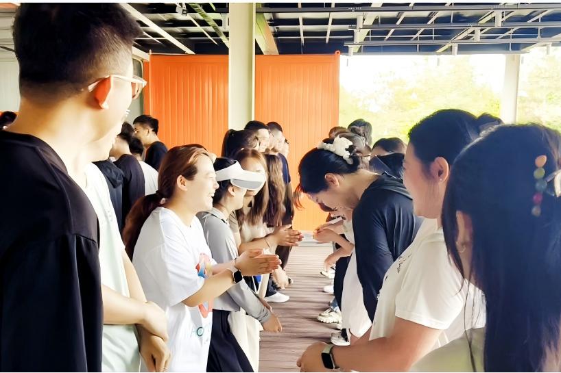 活动结束后,新员工们围坐分享感悟。新员工王鹏飞表示:“这次拓展让我意识到,工作中主动沟通和信任同事同样重要。”而新员工张舒沁则感慨道:“当团队目标一致时,再难的任务也能突破!”交流结束后,新员工一起合影留念,为这一期的拓展训练营画上完美的句号。