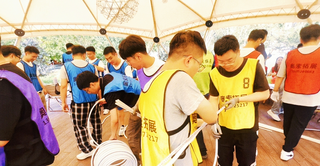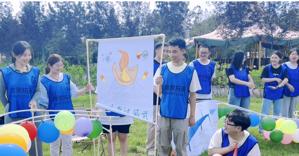 本次拓展训练聚焦“沟通协作、能力提升、文化融入”等核心目标,设置了“团队展示”“急速60秒”“梦想过山车”等多个项目。在“团队展示”环节中,队员们需要共同设计团队的队旗、口号和风采展示动作,大家各抒己见,发挥想象,在互动中变得更为熟悉;“急速60秒”则考验团队智力与分工,大家一起动脑,根据教练给出的规则与线索,合理安排抓取卡片的时间,以最快速度完成收集卡片。尤其在压轴项目“梦想过山车”活动中,全体成员通过高效沟通将零散的材料搭成运球轨道,用气球与彩带装饰,在轨道上方合力运送篮球,完成过山车游戏,深刻体会到“没有完美的个人,只有完美的团队”这一理念。在设计装饰海报中,大家结合“关爱生命,呵护健康”的企业理念,描绘公司发展历程,加深对企业文化的理解与感悟。